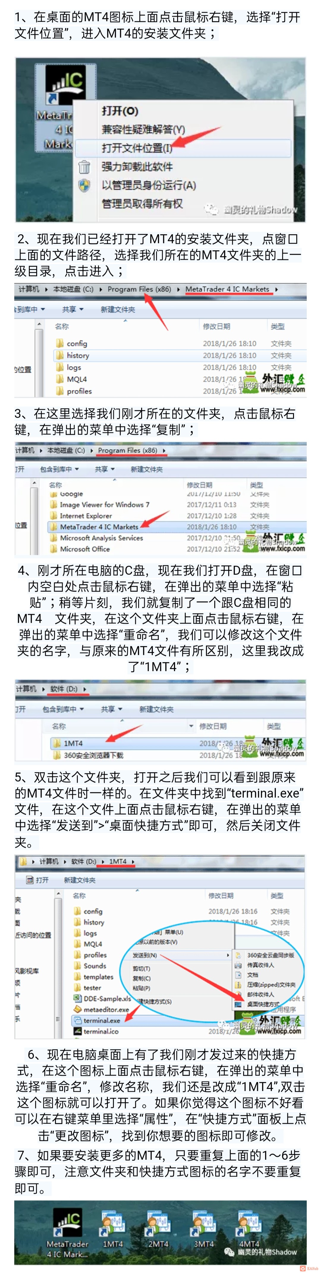 怎么正在一台电脑(或VPS)众开MT4?--下方作品出自【汇有钱途】网站MT4众开,实在很单纯。便是正在一经装配了一个平台的MT4步骤后,正在装配旅途找到MT4的装配文献夹,复造一切的文献到众个差异的文献夹变成副本即可。众开时,要进入每个副本地方文献夹内,找到MT4的terminal.exe实践文献,双击掀开。也可能假设你嫌进入文献夹找terminal.exe烦琐的话就可能正在terminal.exe上点右键,挨个进入选发送到-桌面飞疾式样,云云就可能正在桌面上直接双击掀开了。比如我的XM平台的MT4装配正在H盘,为了同时掀开3个MT4步骤,新筑两个文献夹,定名为XM1和XM2。把原先装配好的MT4一切文献复造到这个两个文献夹。