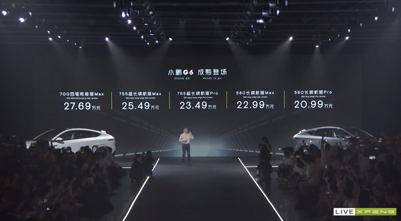 6月29日,小鹏G6正式上市,新车共推出5款筑设车型、续航共有580km、700km、755km三个版本,售价区间为20.99~27.69万,目前新车曾经抵达寰宇小鹏体验中央,估计7月即可开启用户交付。