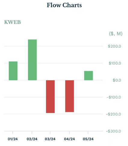另外,来自ETF跟踪网站(的音信显示,海外上市的中邦互联网ETF KWEB本月以还(截至5月13日)资金净流入0.55亿美元,改变了一连两个月的净流出形态。