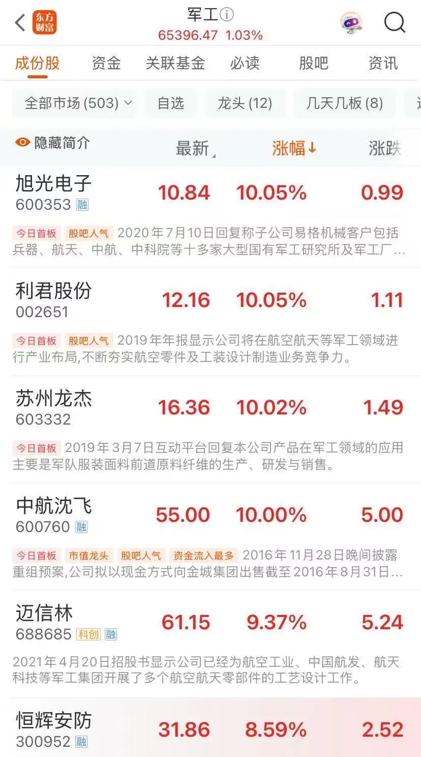 值得防备的是,A股军工股颠簸拉升,中航沈飞冲锋涨停,迈信林、利君股份、七丰精工、邦睿科技等大涨,天秦装置、中航西飞、内蒙一机、航发科技、航天彩虹等跟涨。