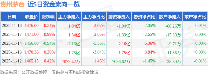 通过逐笔交易单成交金额计算主力资金流向、游资资金流向和散户资金流向,港股商汤科技证券之星动静,截至2025年11月18日收盘,贵州茅台(600519)报收于1476.0元,上涨0.34%,换手率0.27%,成交量3.42万手,成交额50.56亿元。