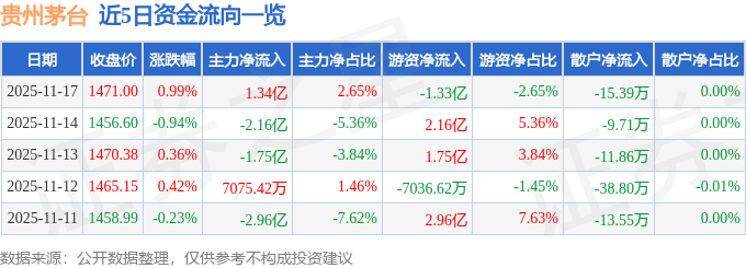 港股交易软件排名不保证该内容(包括但不限于文字、数据及图表)全部或者部分内容的准确性、真实性、完整性、有效性、及时性、原创性等证券之星音讯,截至2025年11月17日收盘,贵州茅台(600519)报收于1471.0元,上涨0.99%,换手率0.28%,成交量3.45万手,成交额50.36亿元。