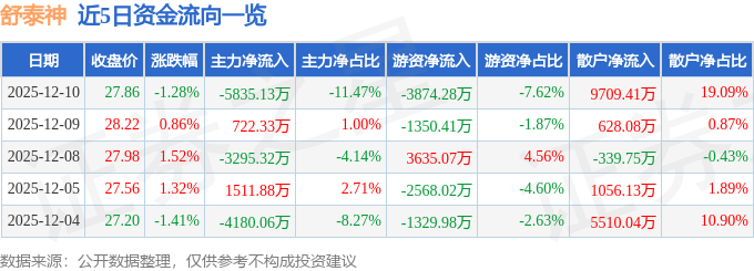 12月10日的资金流向数据方面,主力资金净流出5835.13万元,占总成交额11.47%,逛资资金净流出3874.28万元,占总成交额7.62%,散户资金净流入9709.41万元,占总成交额19.09%。