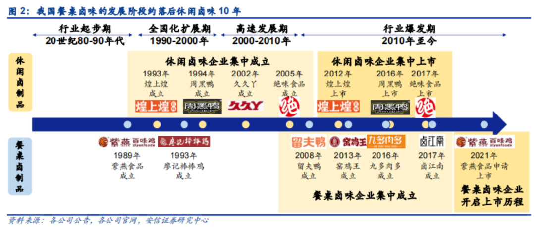 餐桌卤味会合设置于2010年时代,比如紫燕百味鸡、廖记棒棒鸡、窑鸡王等,仅一家紫燕正在2022年上岸资金市集,其他品牌平昔正在顽固发扬。