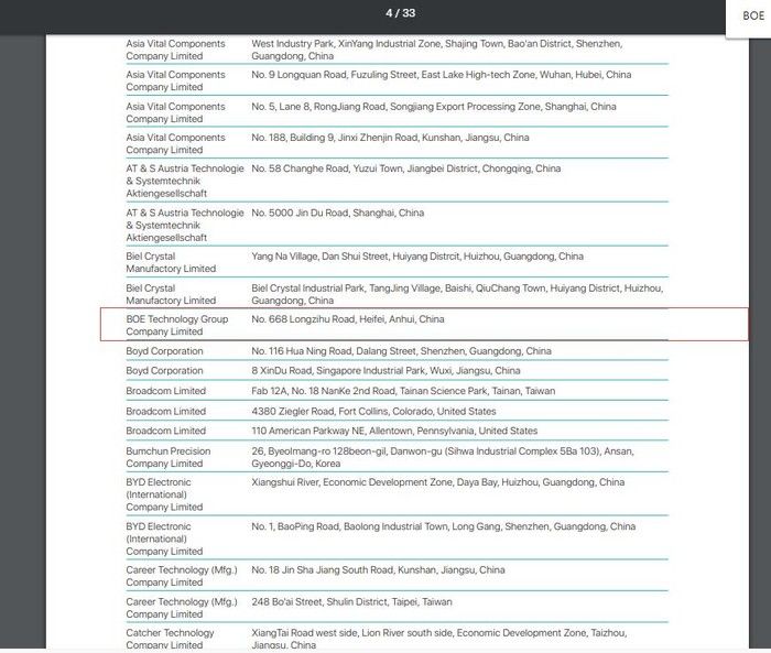 从苹果官方供应2019年供应商名单和东方产业网供应的截至2020年7月30日15点15分苹果观点股及时讯息来看,目前出产苹果iPhone屏幕供应链厂商有蓝思科技和京东方等厂商,没有看到康宁大猩猩玻璃动作苹果财产链的供应商显示。