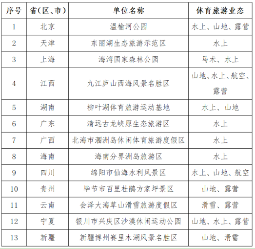 周到阅读:闭于认定北京温榆河公园等13家单元为邦度体育旅逛树模基地的布告