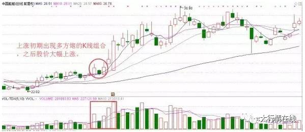 之后股价开始进入上涨趋势炒股最笨最简单技巧本节将扼要先容K线组合:众方炮,它与之前先容过的清晨十字星、清晨之星有必定的好像,不过K线组合状态的组成上会全部差别。