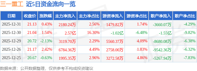 简介当天两者的差额即是当天两种力量相抵之后剩下的推动股价上升的净力今天美股开盘吗 证券之星信息,截至2025年12月31日收盘,三一重工(600031)报收于21.13元,上涨0.43%,换手率0.48%,成...