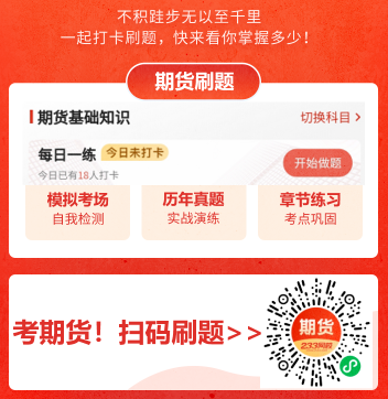 2、期货练习原料中央:汇总了期货考察的各样原料,如近三年真题考点、超高频考点、头脑导图、考前N页纸、三色札记、数字考点等,供宏伟考生练习参考、急速找到纪念不敷点,正在听课/自学的同时搭配原料和做题练习恶果更高哦,公共能够免费下载,心爱纸质练习的好友还能够自行打印出来!【点击进入期货从业原料包】
